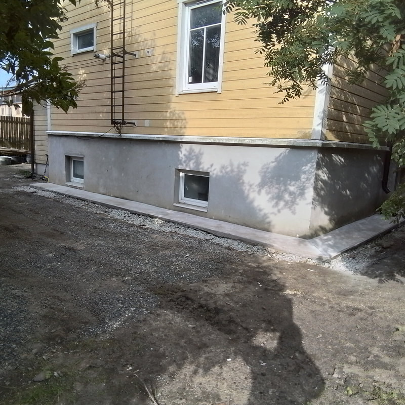 Keldripõranda süvendus, drenaaztorustiku asetus, põranda betoneerimine, keldribokside ehitus, elektritöö, aknaavade parajaks ladumine, krohvimine ja aknapl3kkide asetus.