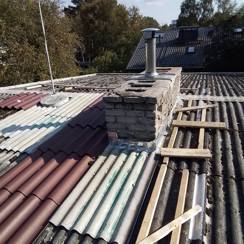 Korstnad, korstnamütside ja ülemineku plekkidega.
